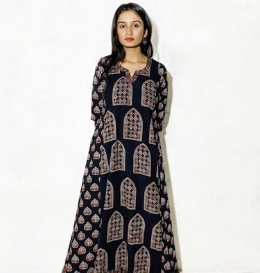 Explore our modern dresses crafted from traditional handblocked textiles.